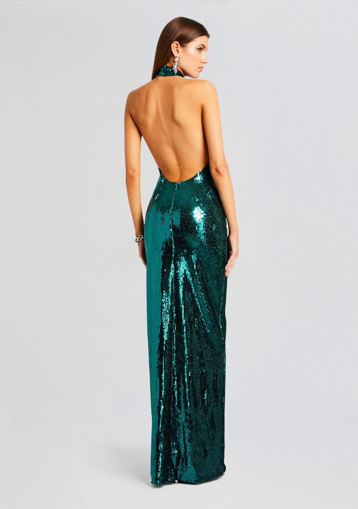 Prepare to make waves at your next event with our Cora Dress. This captivating piece seamlessly blends the tranquility of blue with the vibrancy of green, creating a spellbinding ensemble that guarantees you’ll turn heads. Designed with a halter neck and an alluring open back, this gown is the epitome of chic sophistication. Shown here in Aquamarine.